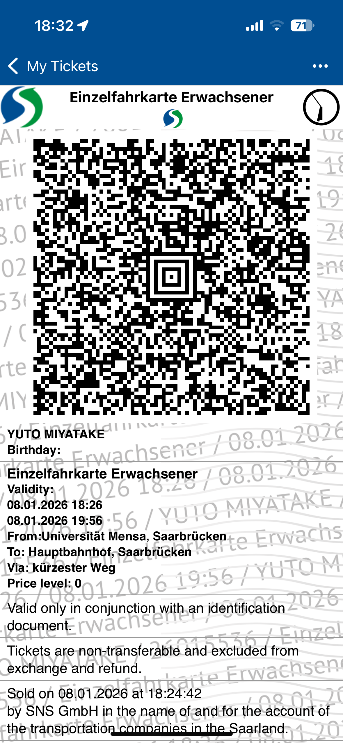 Saarbrücken駅からSaarland大学までは3ユーロで、Apple Pay、PayPal、クレジットカードで決済可能。しかし、私のiPhoneではApple PayとPayPalでは決済できず、毎回クレジットカードで決済しました(バスに乗るたびにクレジットカード情報を入力させられてかなり面倒でした)。