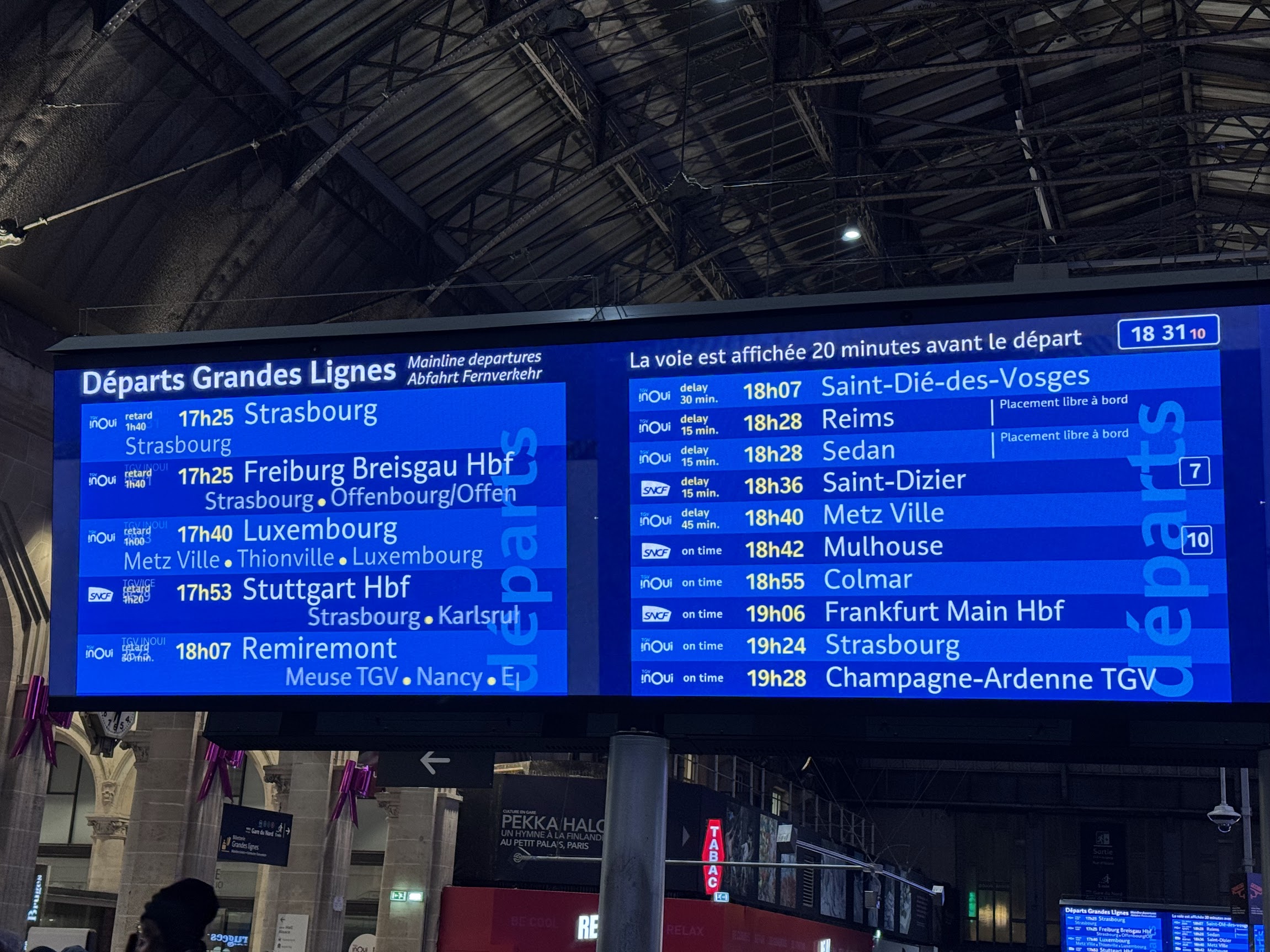 CDGに到着後、電車でパリ北駅まで行き、メトロに乗り換えて一駅でパリ東駅。 パリ東駅からTGVで約1時間50分。